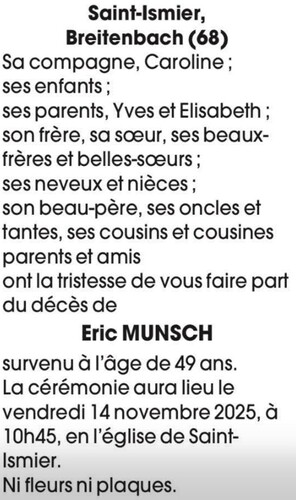--> Eric nous a quitté la semaine dernière. Si vous souhaitez l accompagner, la Cérémonie aura lieu le 14 novembre à 10h45 à l église de Saint Ismiers.